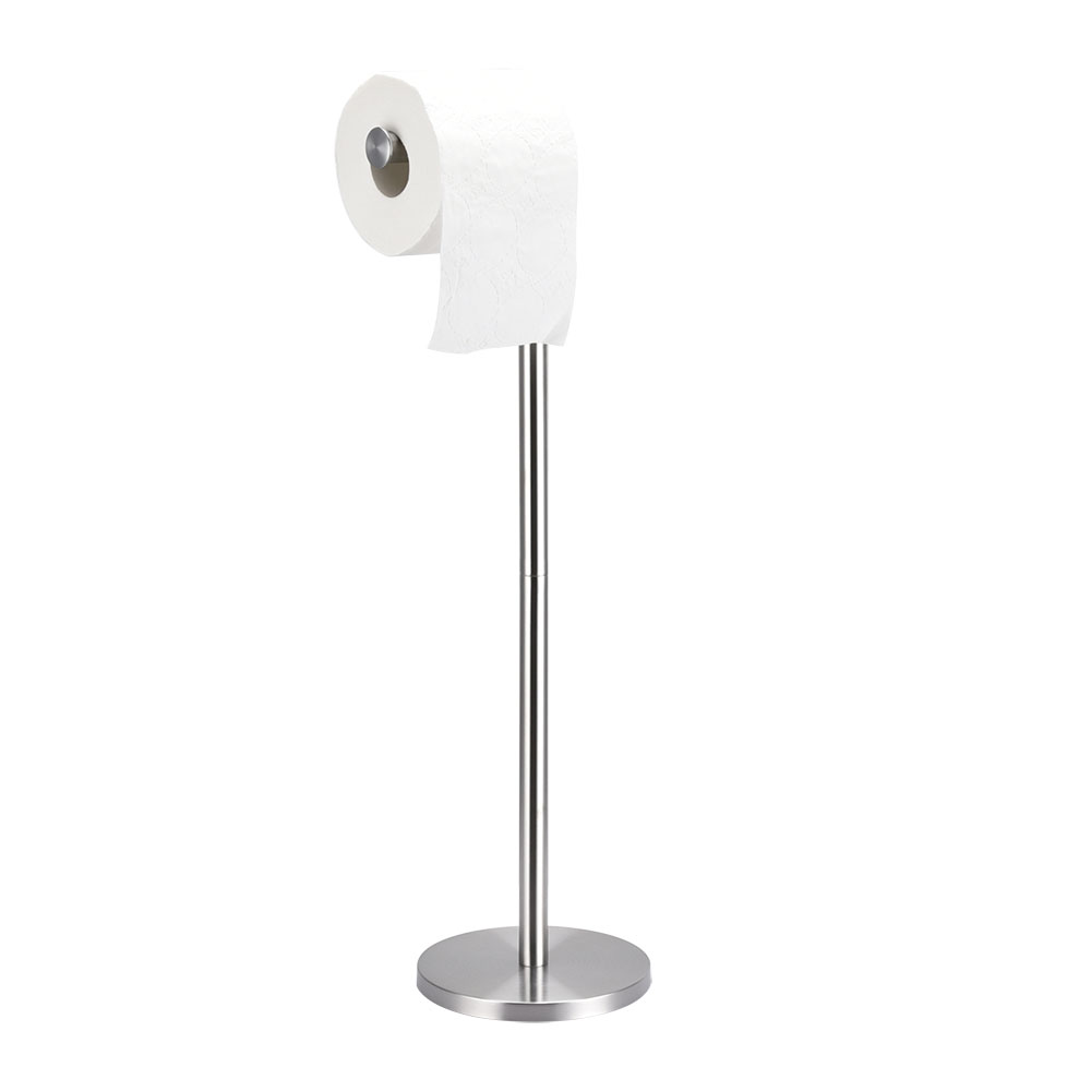 - Bathroom silver black white toilet paper tissue roll holder stand is a space-saving design. Our toilet paper holder stand dispenses one roll and holds spare rolls.