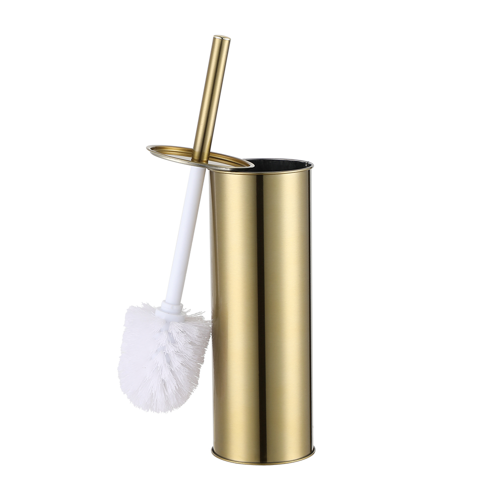 - Bathroom toilet copper bronze gold brass silicone toilet bowl brush holder. A full length plastic container lines the inside of the holder.