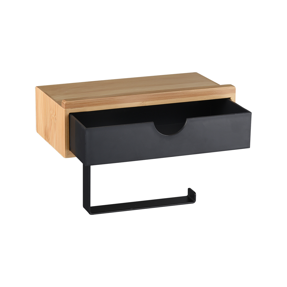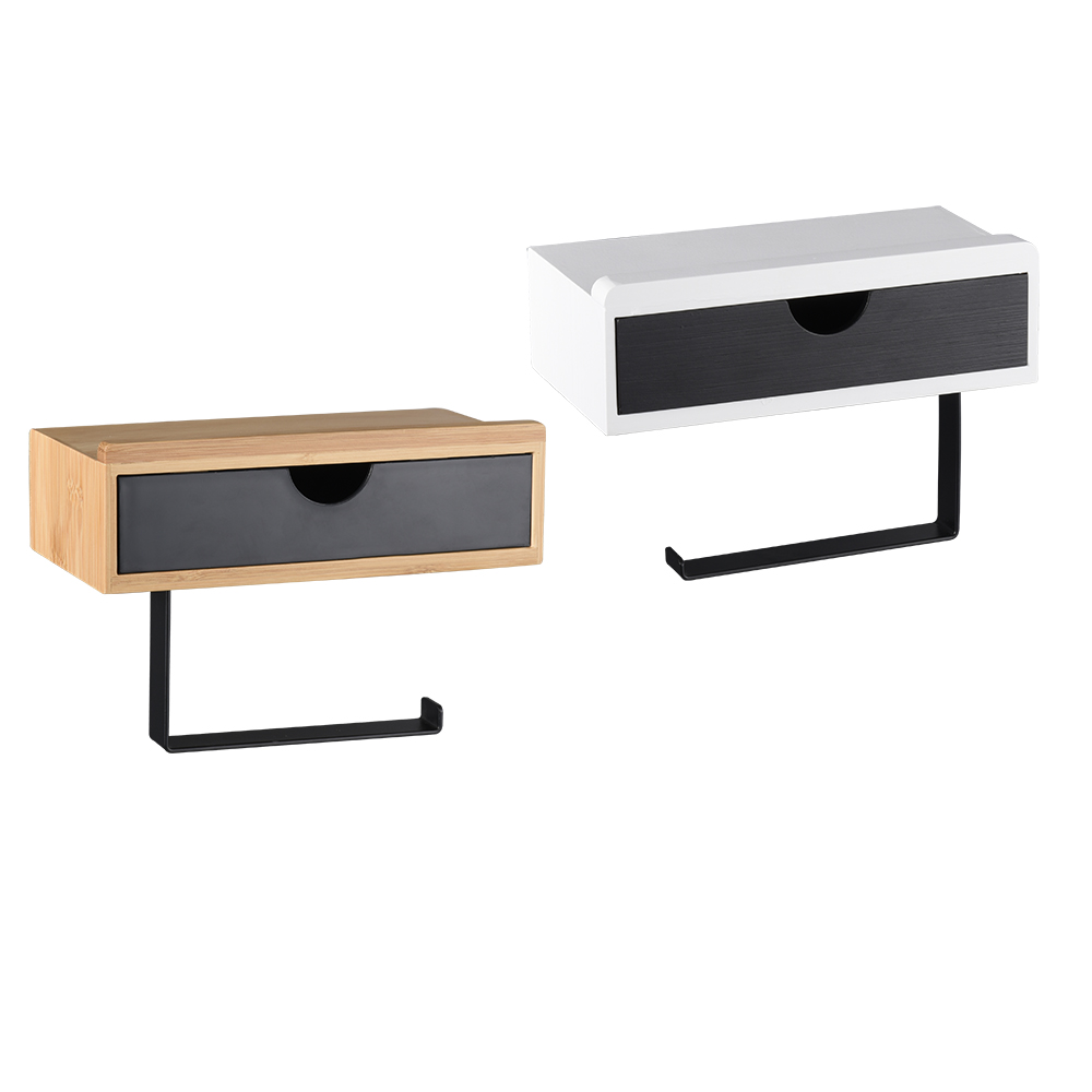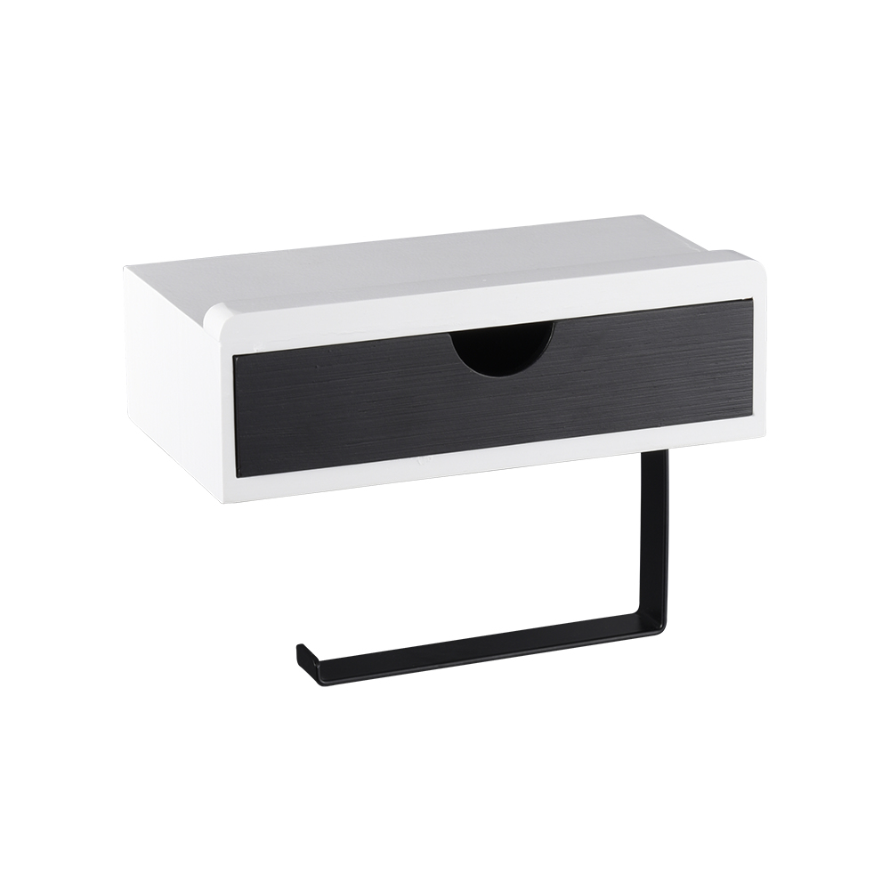Black white natural wall mounting toilet tissue paper roll holder with drawer
