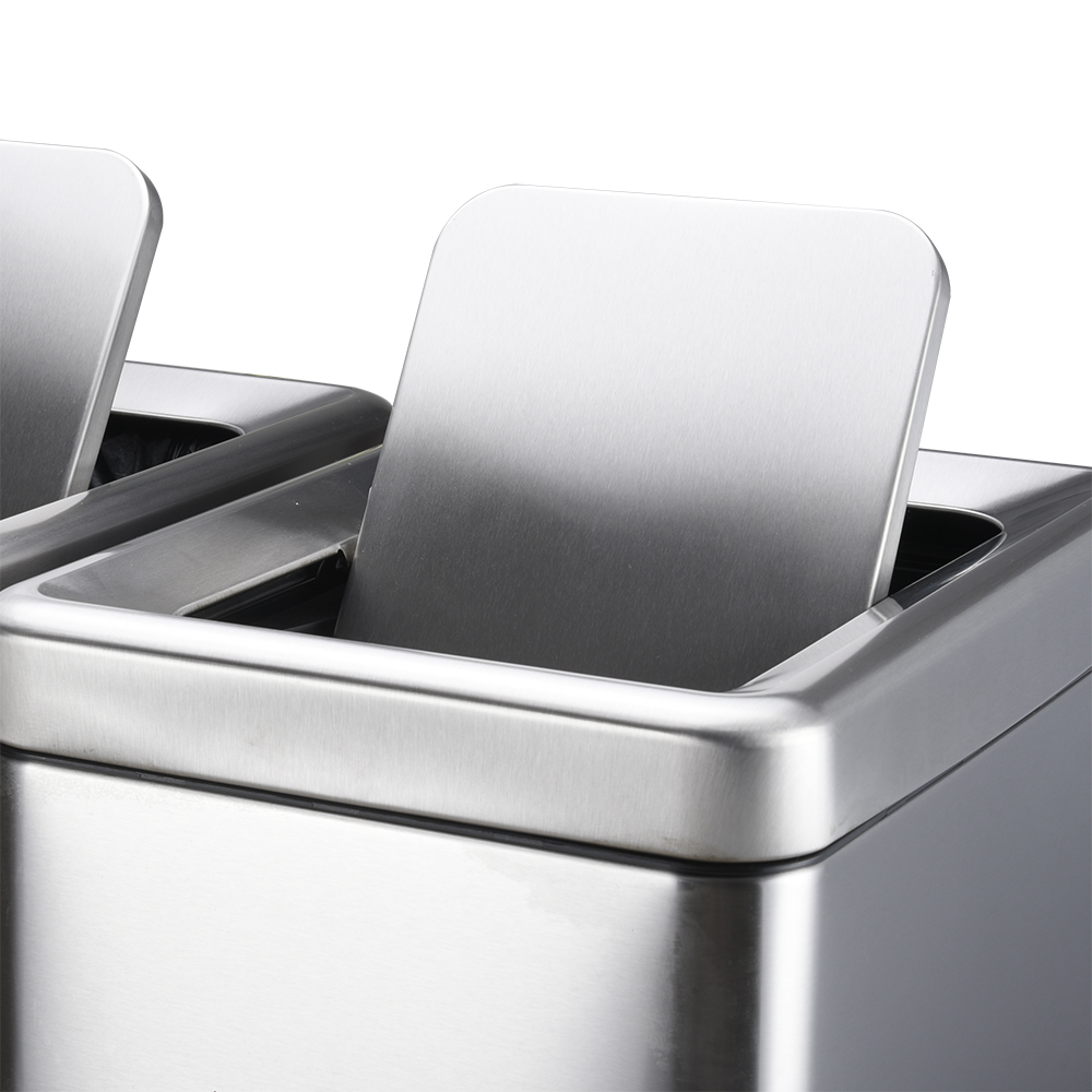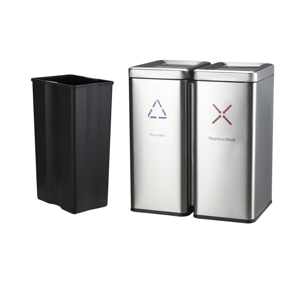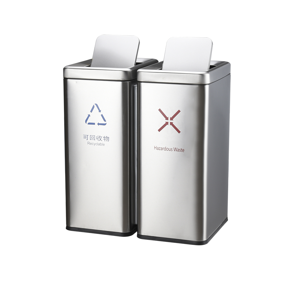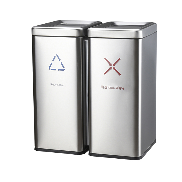 - Commercial public stainless steel dual double compartment trash can with liner is perfect for public area, such as shopping mall, hotel, library, school and so on.