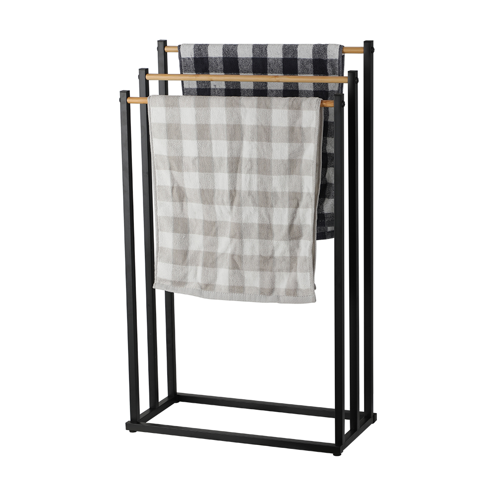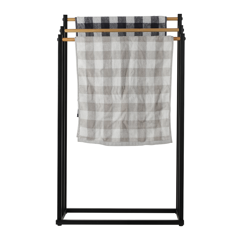 ECO friendly bamboo stainless steel dual bars towel stand factory manufacturer