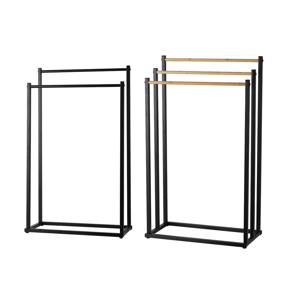- ECO friendly bamboo stainless steel dual bars towel stand factory manufacturer, ECO-friendly material.