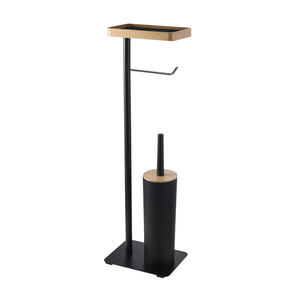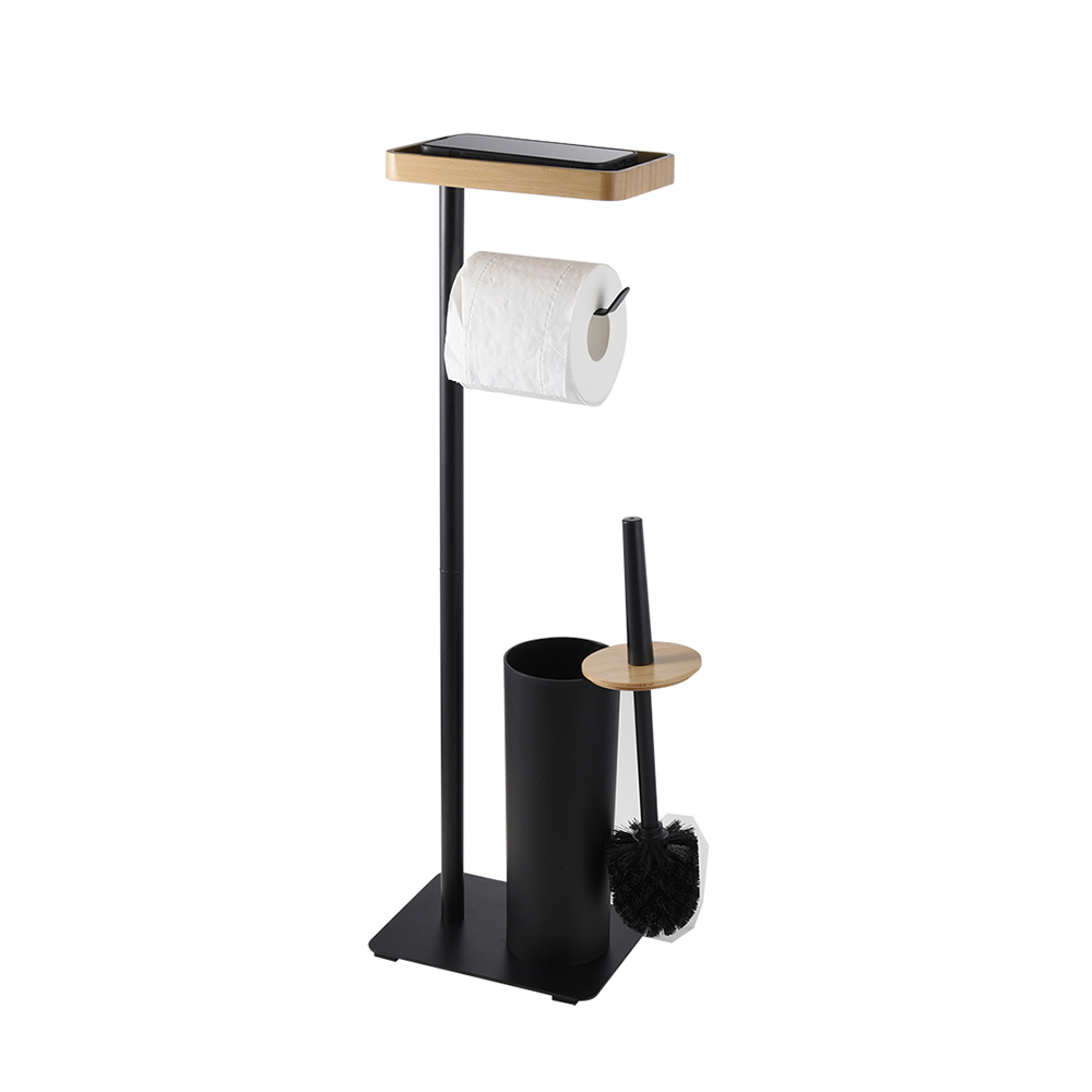 - Eco-friendly freestanding toilet brush holder with phone shelf holder is a space-saving design.