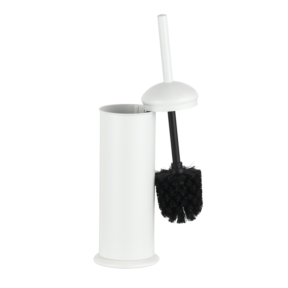 - El diseño compacto que ahorra espacio mantiene el cepillo de inodoro oculto y proporciona un almacenamiento higiénico.