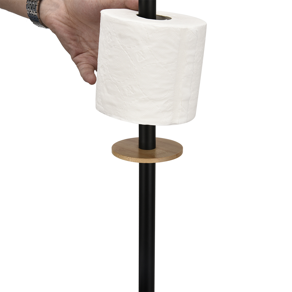 - Free standing black bamboo bathroom toilet roll holder stand. It can be assembled package and KD package.