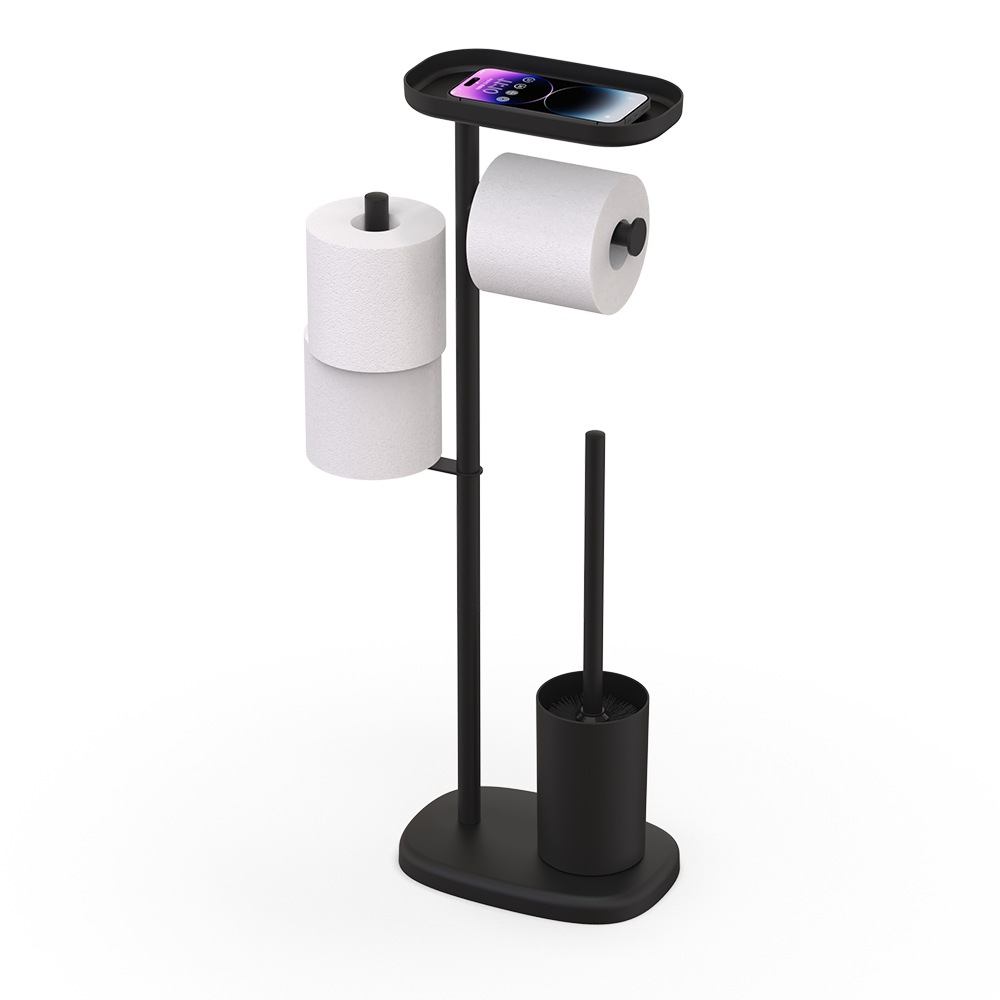 - Our toilet paper holder stand dispenses one roll and holds spare rolls.