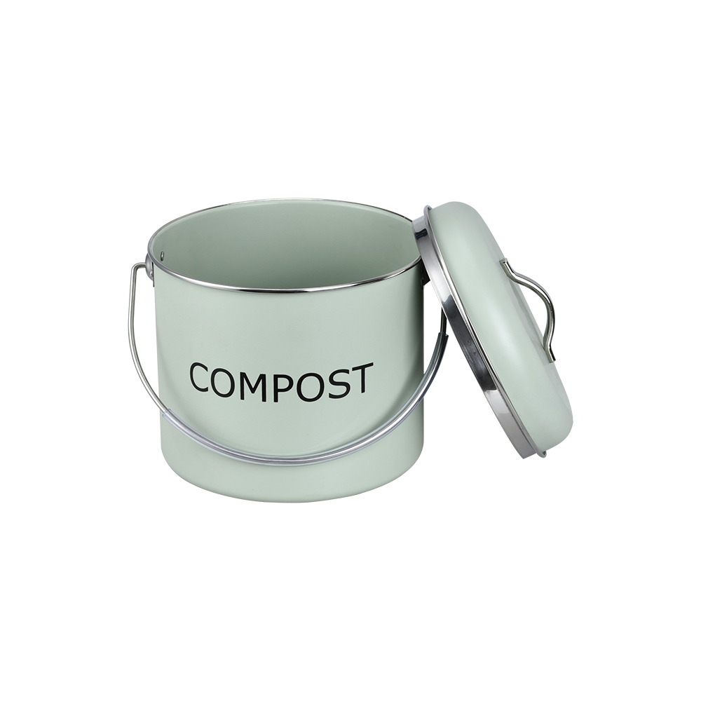 - Use the sturdy handle to empty the indoor compost into your outside food waste bin without any hassle; Simply wash the kitchen compost container with warm soapy water & gently wipe the lid with a damp cloth after use .