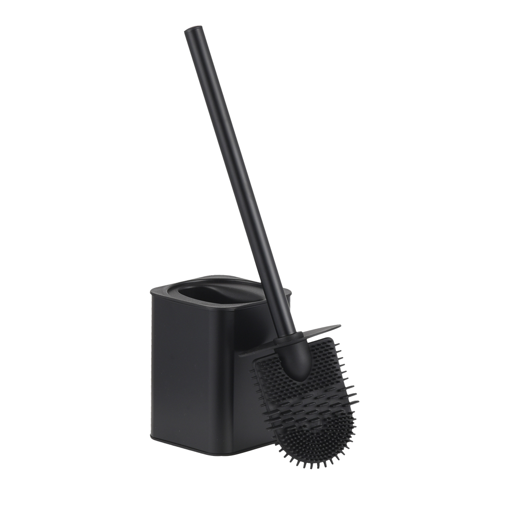 - Self adhesive wall mounted silicone TPR toilet brush holder black satin.