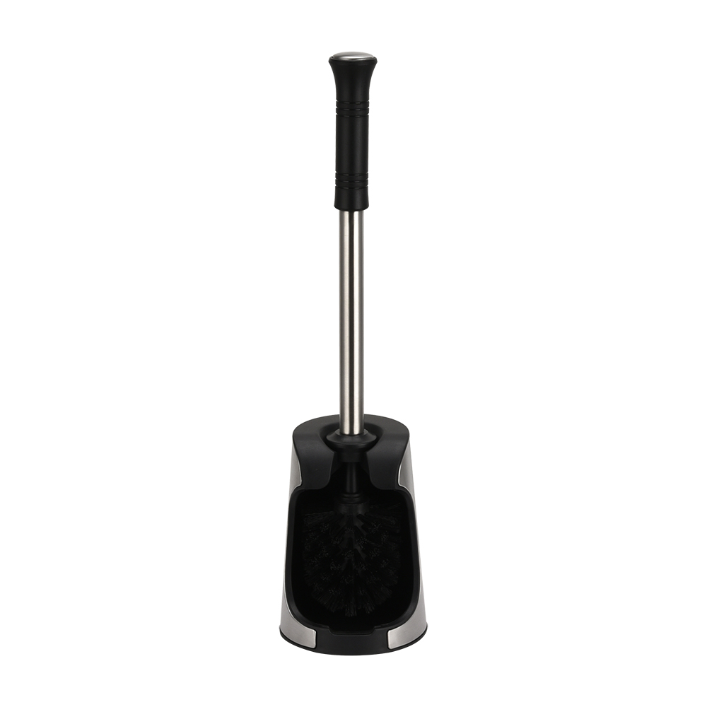 Semi open stainless steel toilet bowl brush and holder black white grey