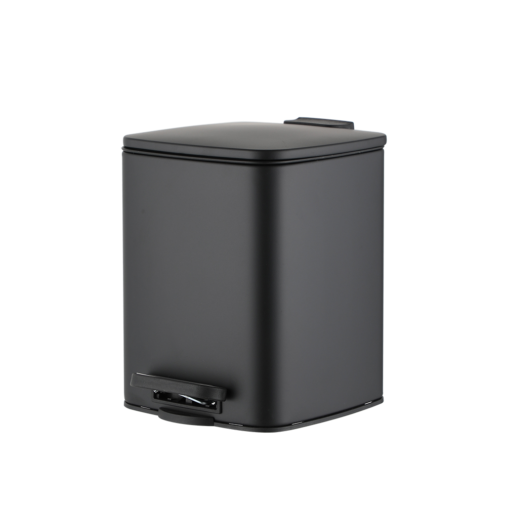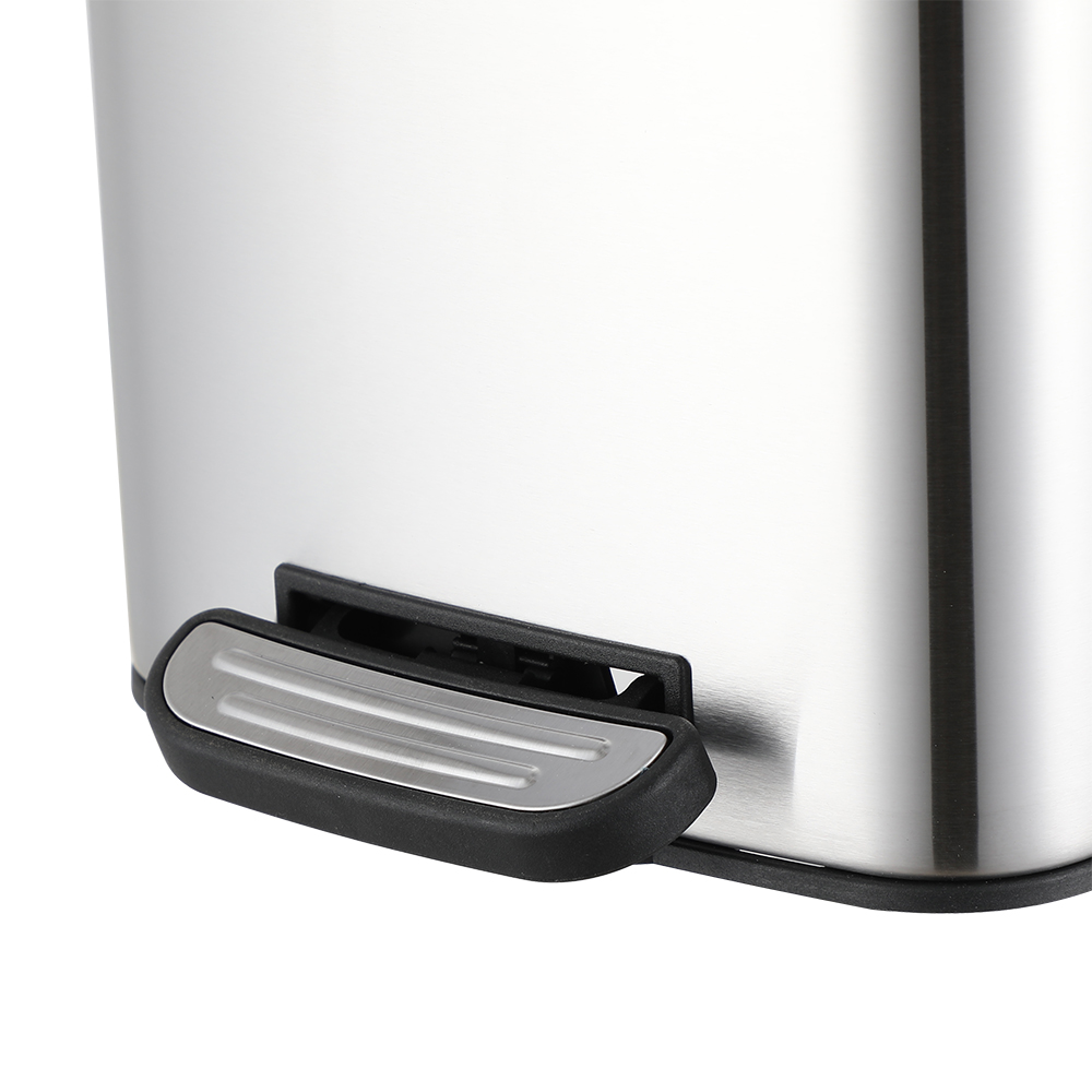 - Soft close 5L slim lid square trash can rubbish garbage bin factory. It is made of a stainless steel panel, sturdy.