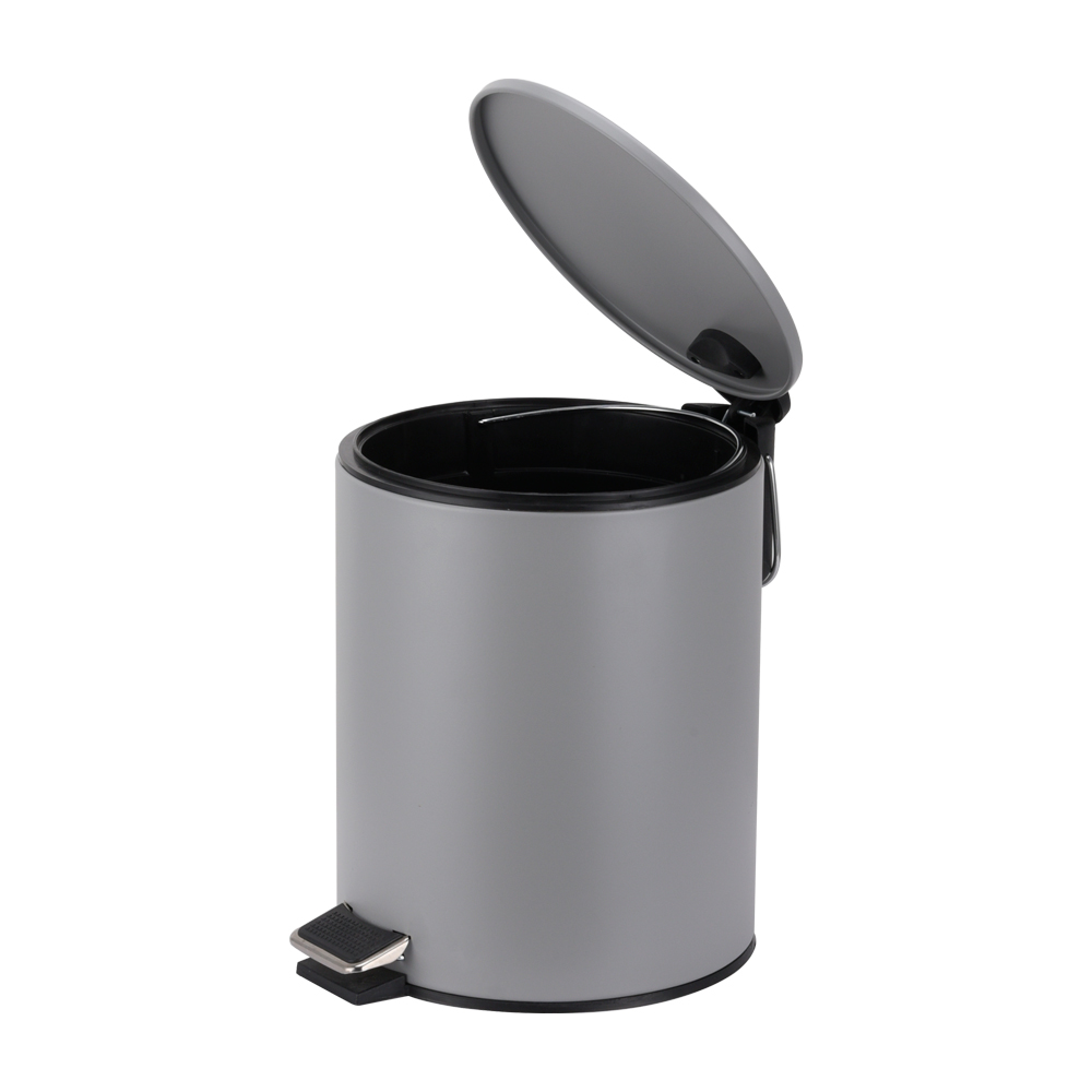 - Soft close round slim lid trash can garbage rubbish bin manufacturer. It is made of a stainless steel panel, sturdy.
