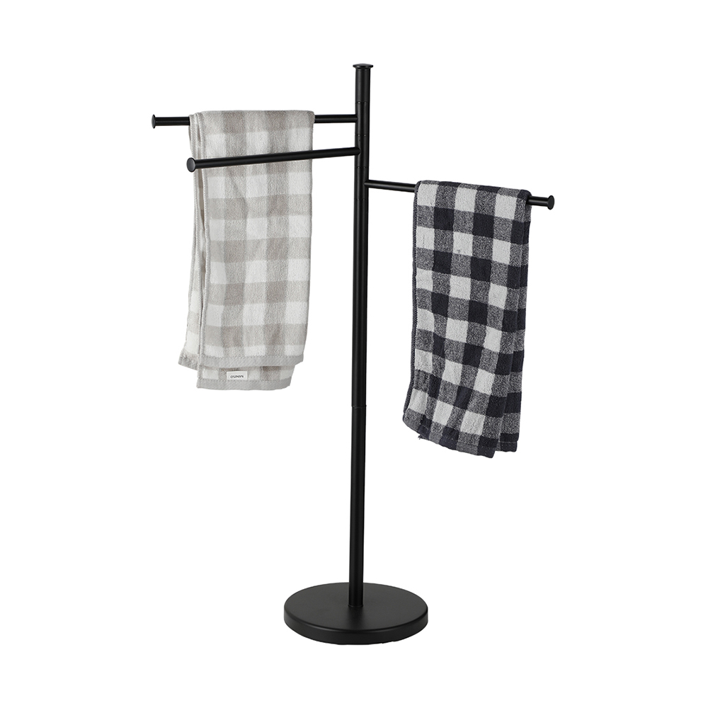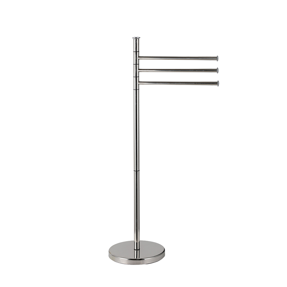 - Stainless steel three 3 bar towel rack stand holder chrome black. It is just the right height for storing fresh, clean towels as your step out of the shower or tub.