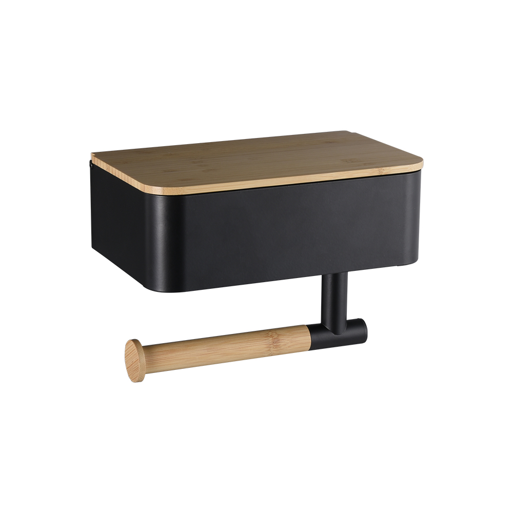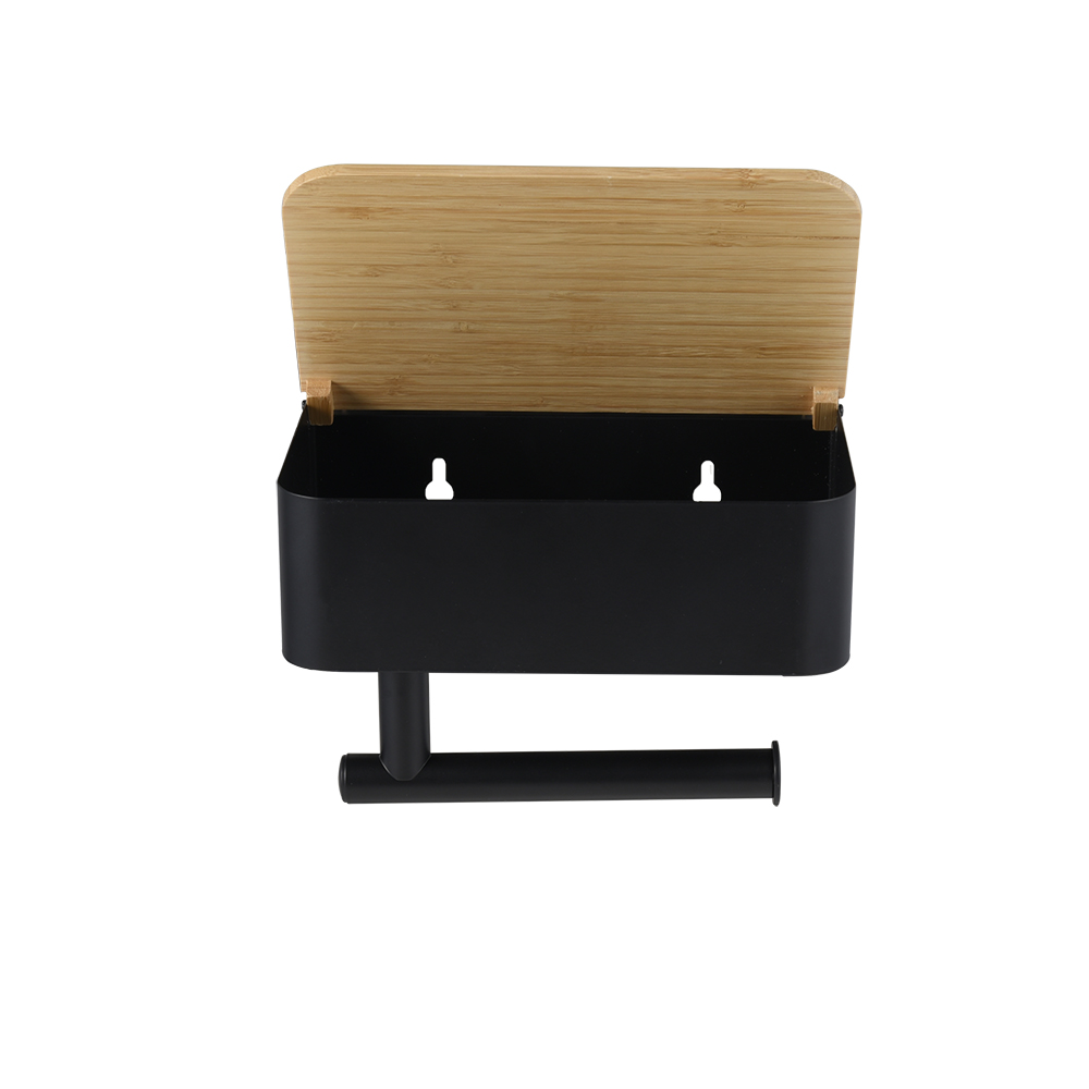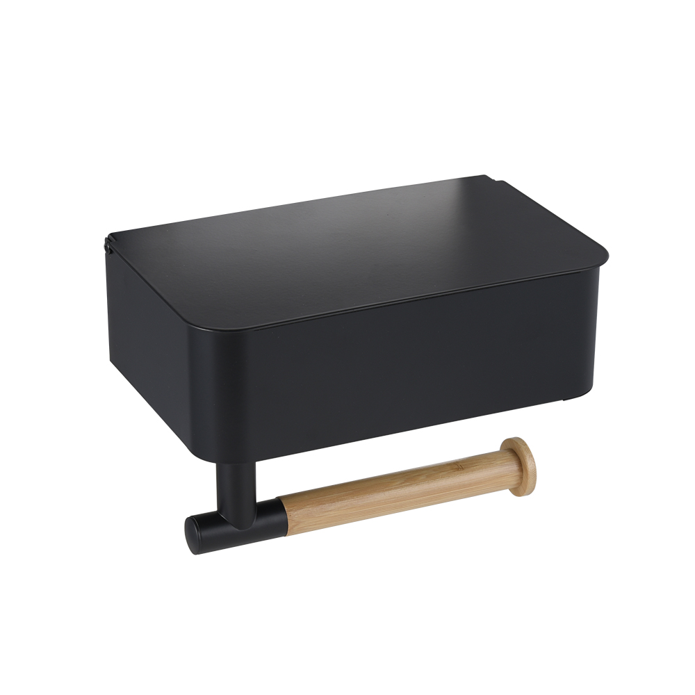 - Toilet bathroom self adhesive bamboo steel wet wipes box holder black is in a convenient design, paper dispenses easily.