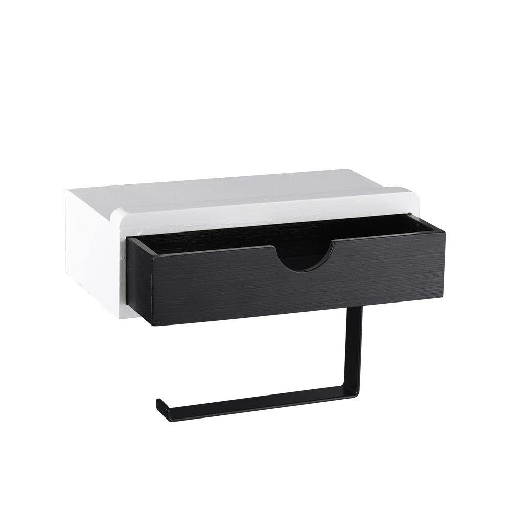 Black white natural wall mounting toilet tissue paper roll holder with drawer