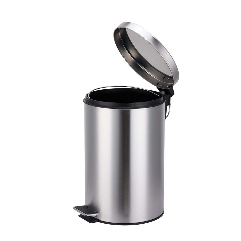 Classic and popular household round stainless steel pedal trash can bin chrome matt with pedal