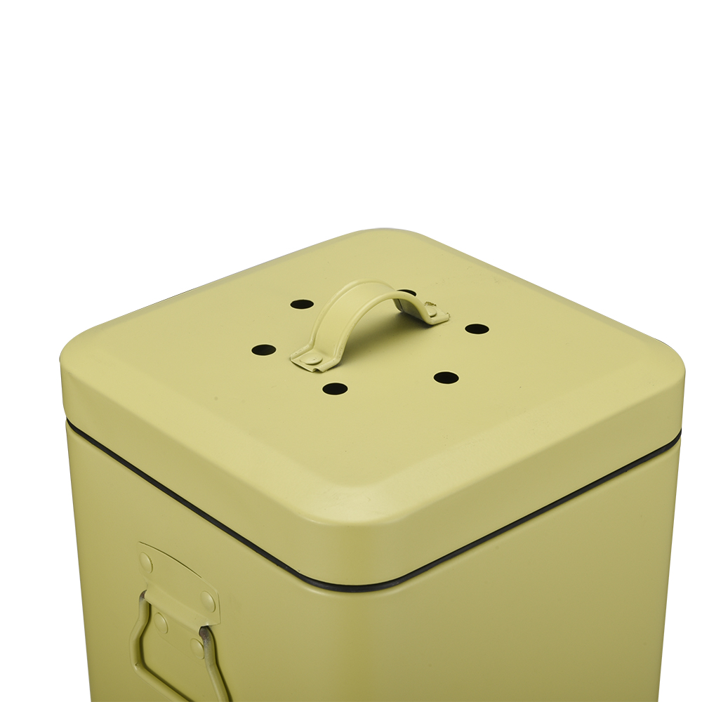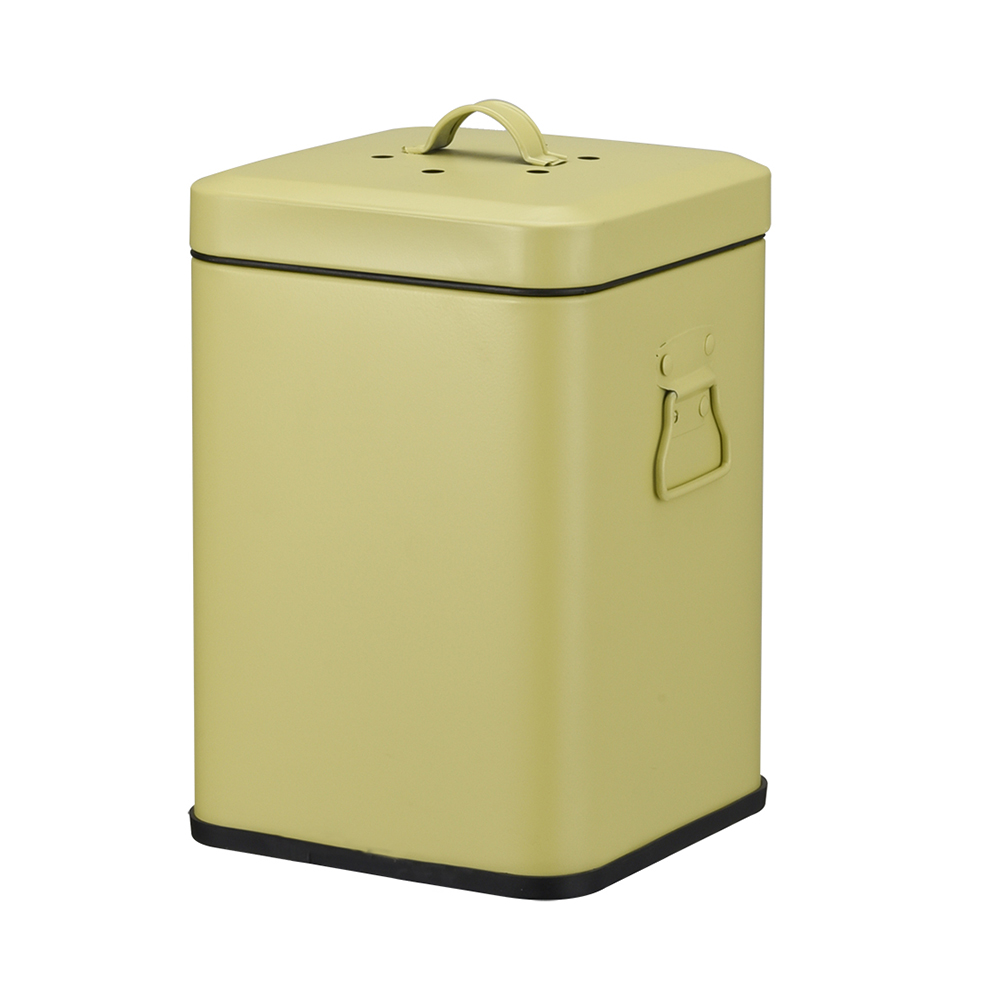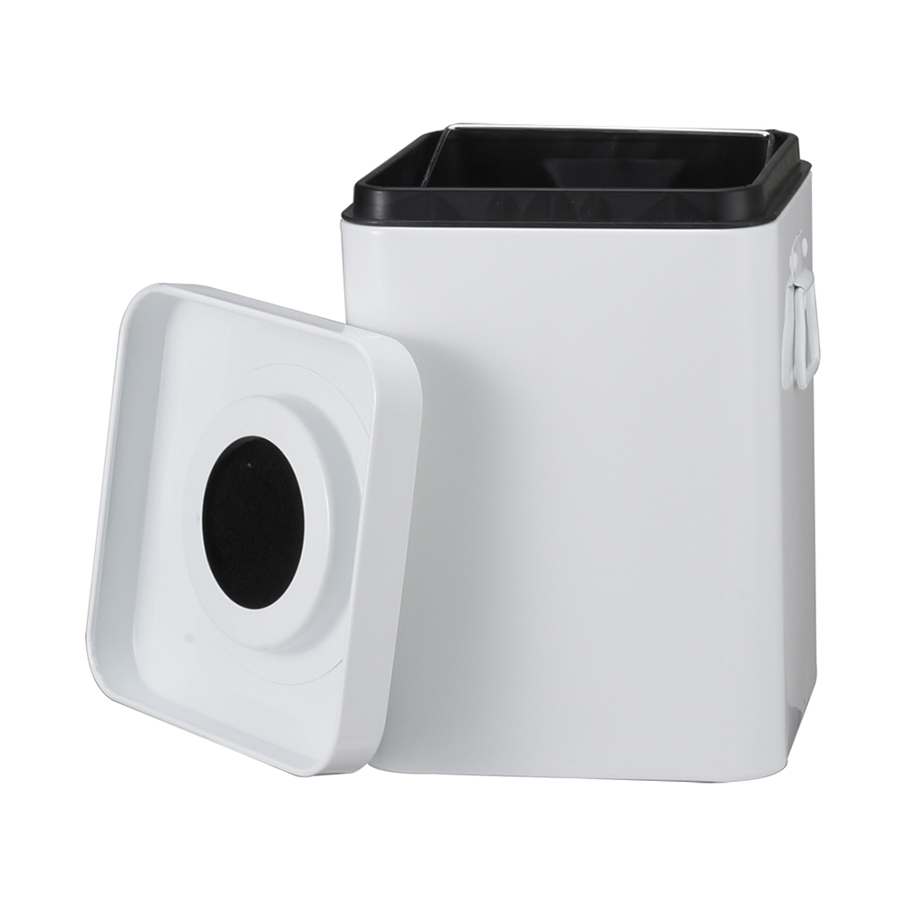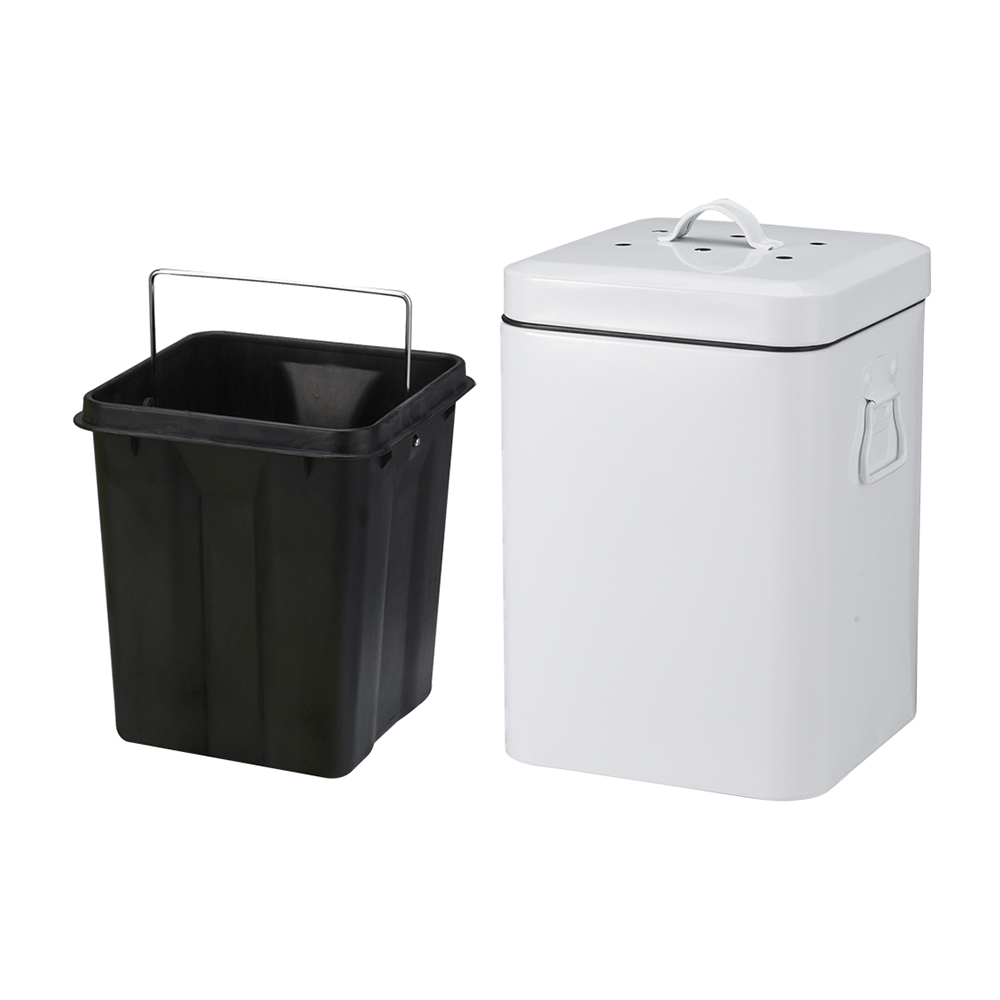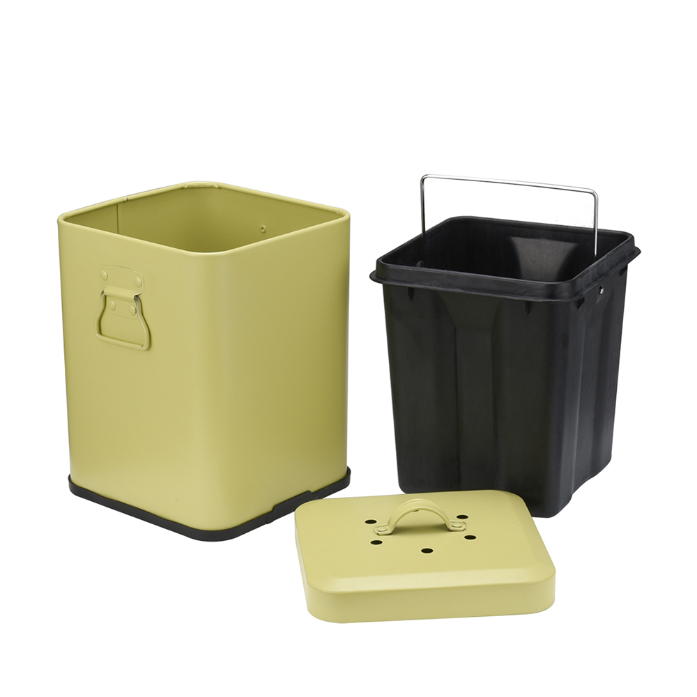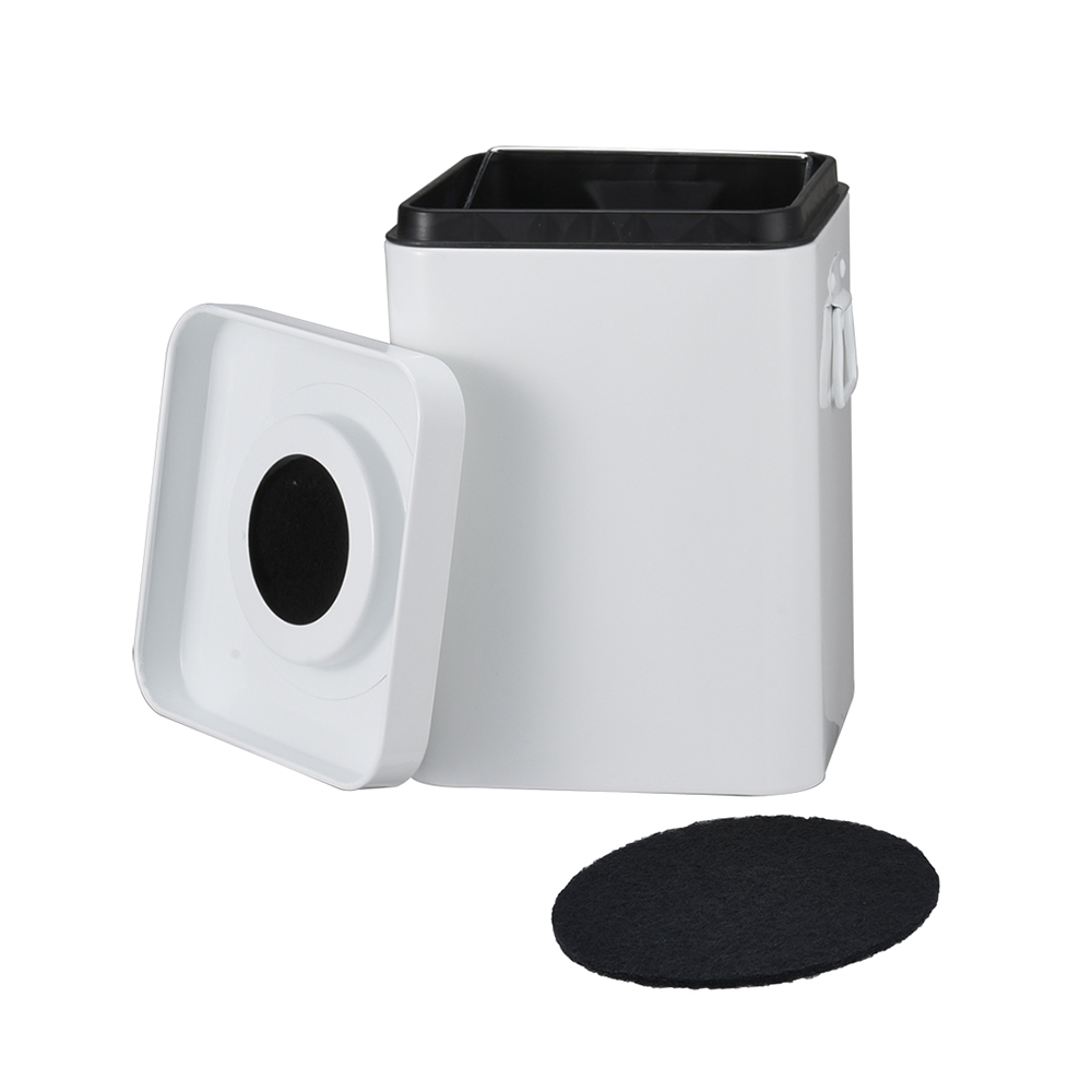 - Our countertop square compost bin for kitchen indoor compost Bin for kitchen counter with charcoal filter and inner pail that enables you to easily carry your collected food scraps to the compost area in your backyard. Wide-mouthed opening makes it easy to throw in scraps from your kitchen. With two size for difference user , this compost pail can hold 2-3 days worth of your organic kitchen waste, saving you multiple trips from your kitchen to your outdoor compost area.