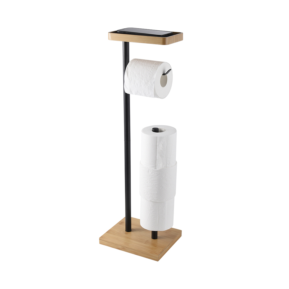 - Eco-friendly freestanding toilet brush holder with phone shelf holder is a space-saving design.