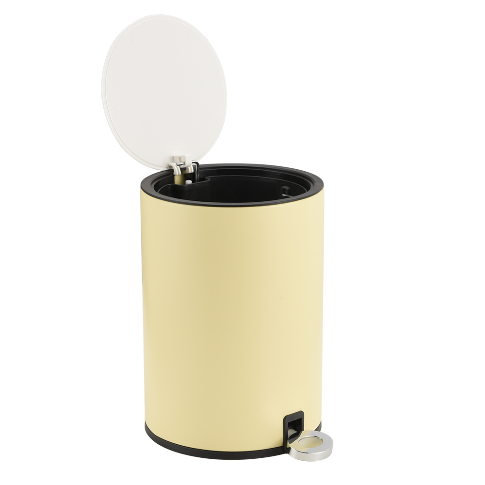 - Con un pedal pequeño y práctico, no es necesario agacharse para abrir la tapa, lo que ahorra trabajo y es cómodo de usar.
