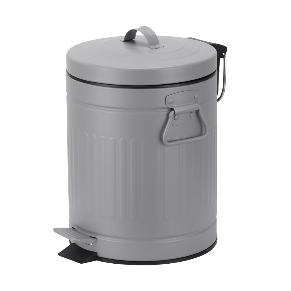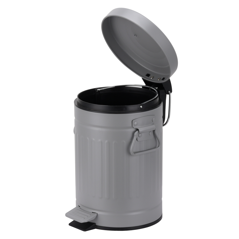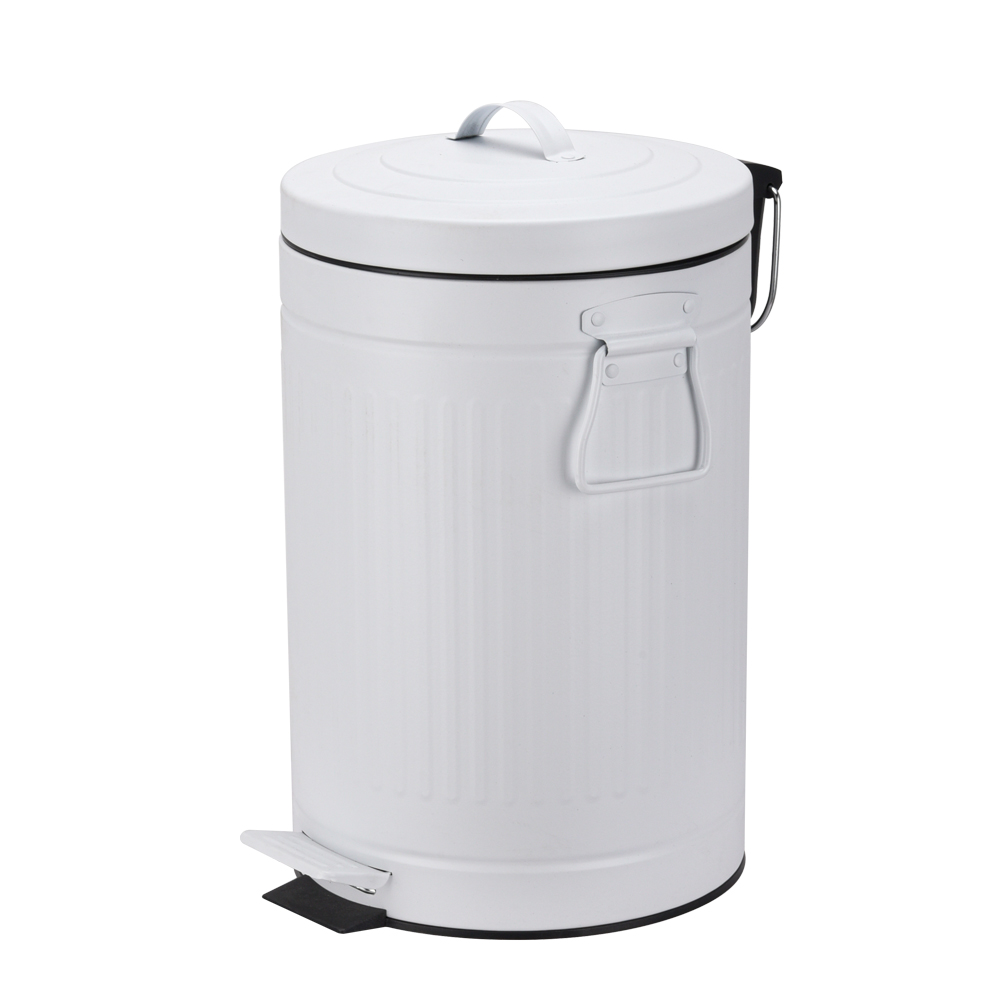 - Nuestro contenedor de basura de metal de estilo clásico brinda comodidad y saneamiento al mismo tiempo. Cualquiera puede deshacerse de la basura sin preocupaciones gracias al pedal que abre la tapa de nuestro cubo de basura emergente. Incluso la tapa de este contenedor de metal se cierra con un movimiento lento y suave para evitar el ruido: un bote de basura verdaderamente confiable, perfecto para las áreas más concurridas de su hogar.