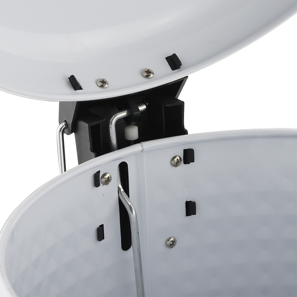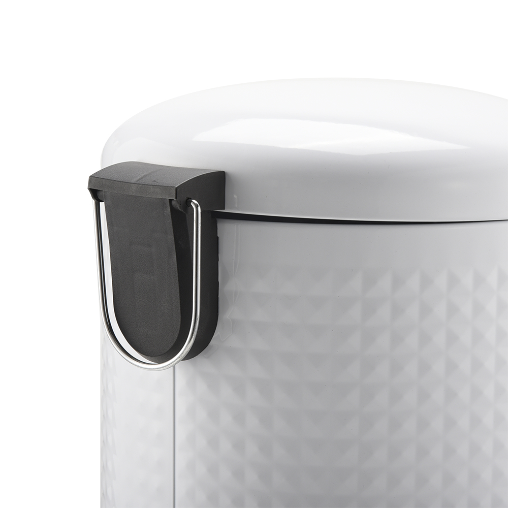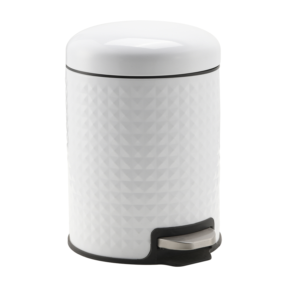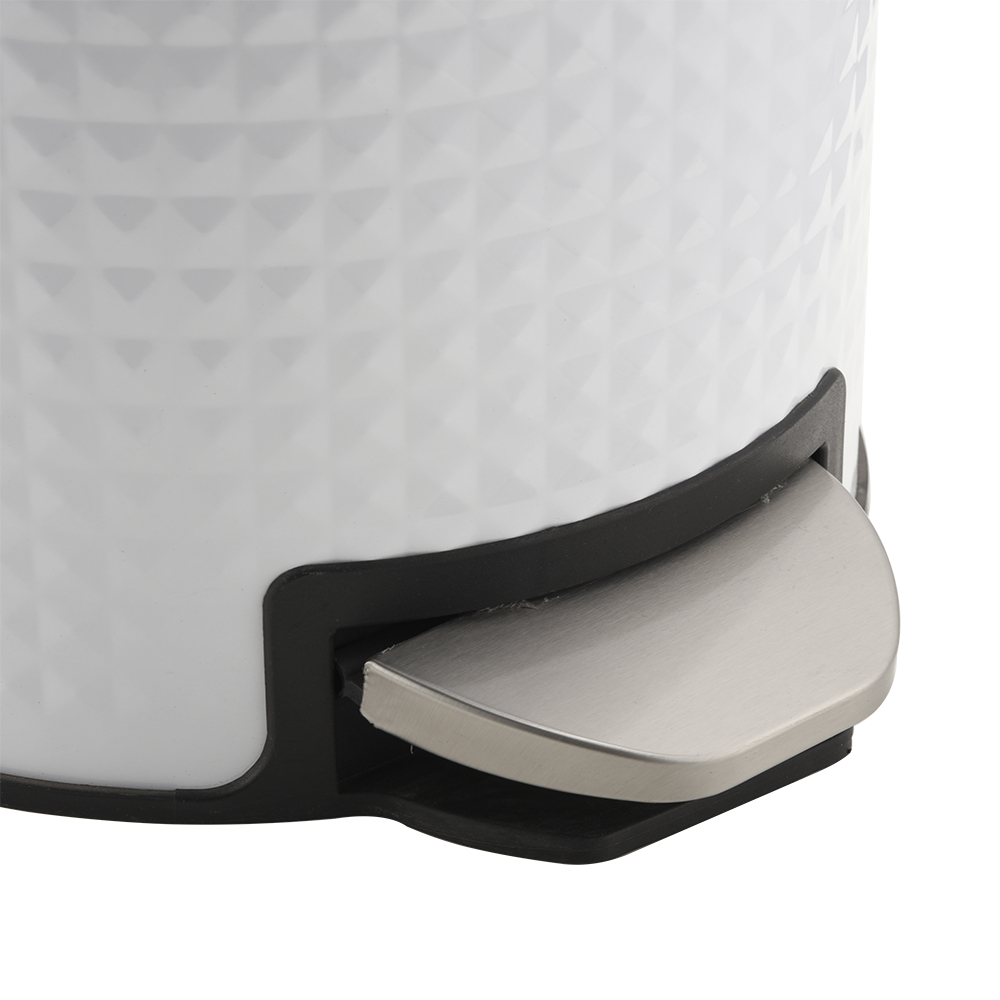 - Nuestro contenedor de basura con pedal en relieve brinda comodidad y saneamiento al mismo tiempo. Cualquiera puede deshacerse de la basura sin preocupaciones gracias al pedal que abre la tapa de nuestro cubo de basura emergente. Incluso la tapa de este contenedor de metal se cierra con un movimiento lento y suave para evitar el ruido: un bote de basura verdaderamente confiable, perfecto para las áreas más concurridas de su hogar.