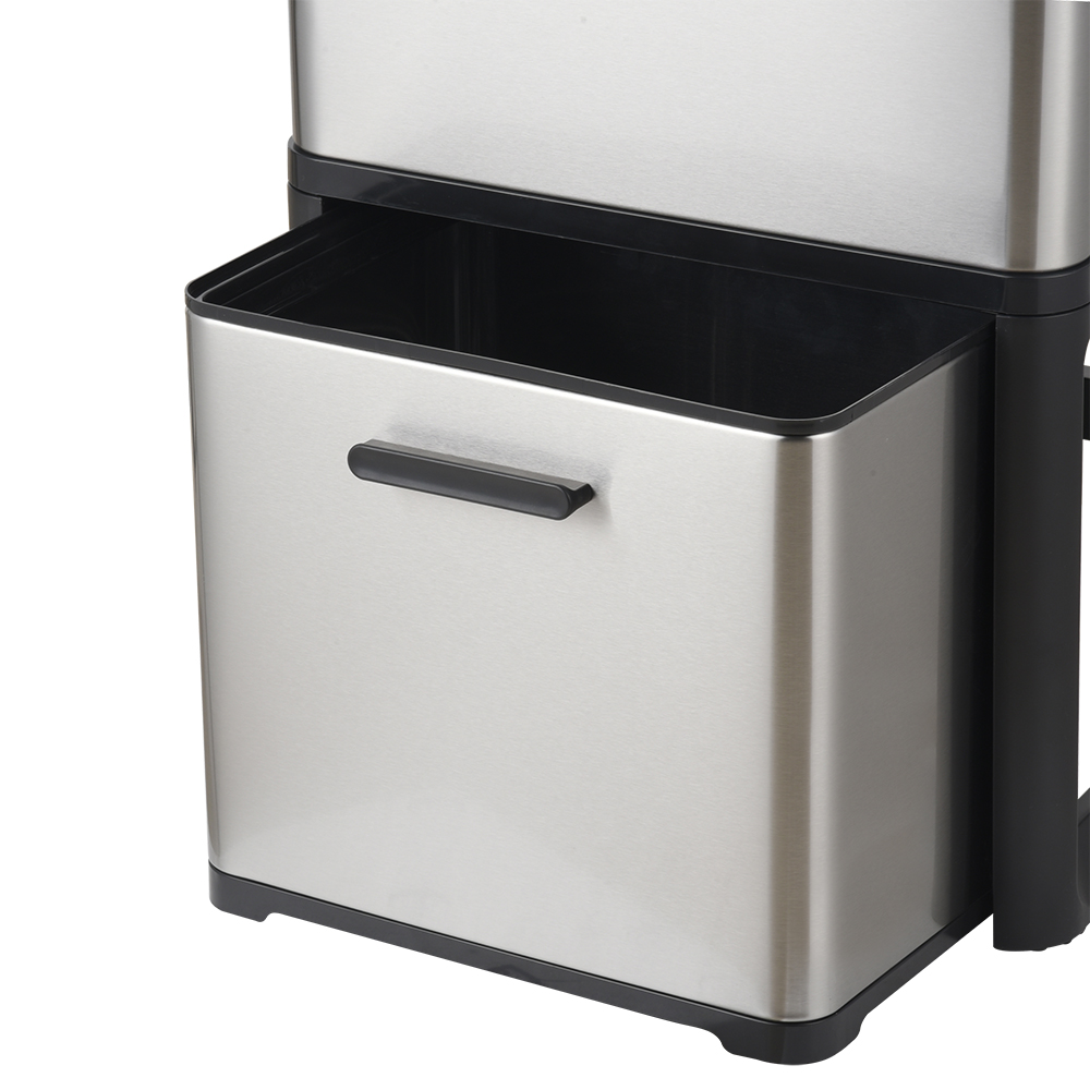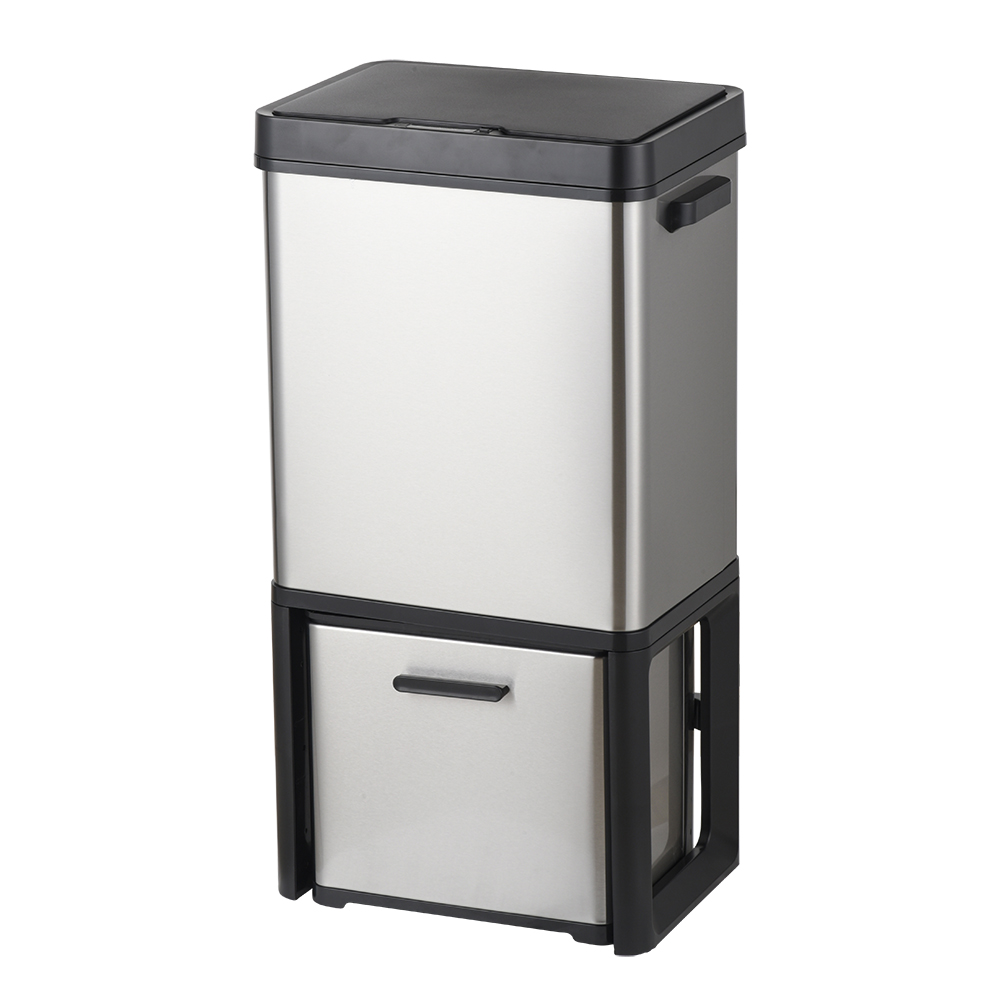 Papelera cuadrada redonda con sensor de acero inoxidable satinado blanco cepillado a pilas con sensor negro