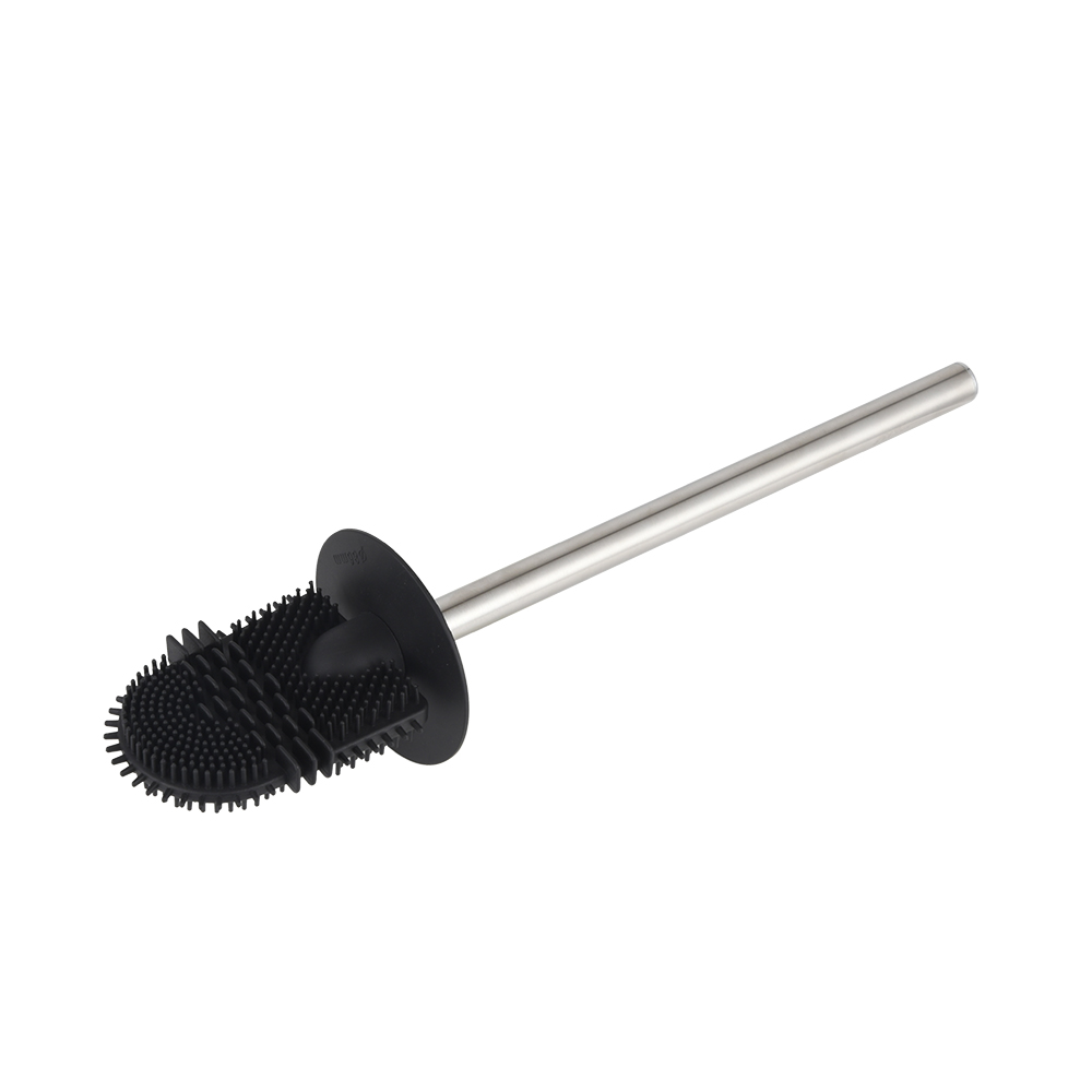 - Portaescobillas de baño autoadhesivo de silicona TPR para montaje en pared, color negro satinado.