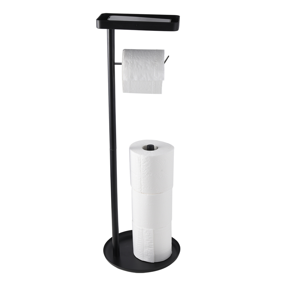 - Our toilet paper holder stand dispenses one roll and holds spare rolls.