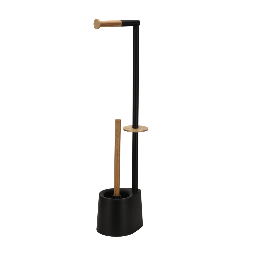- Free standing black bamboo bathroom toilet roll holder stand. It can be assembled package and KD package.