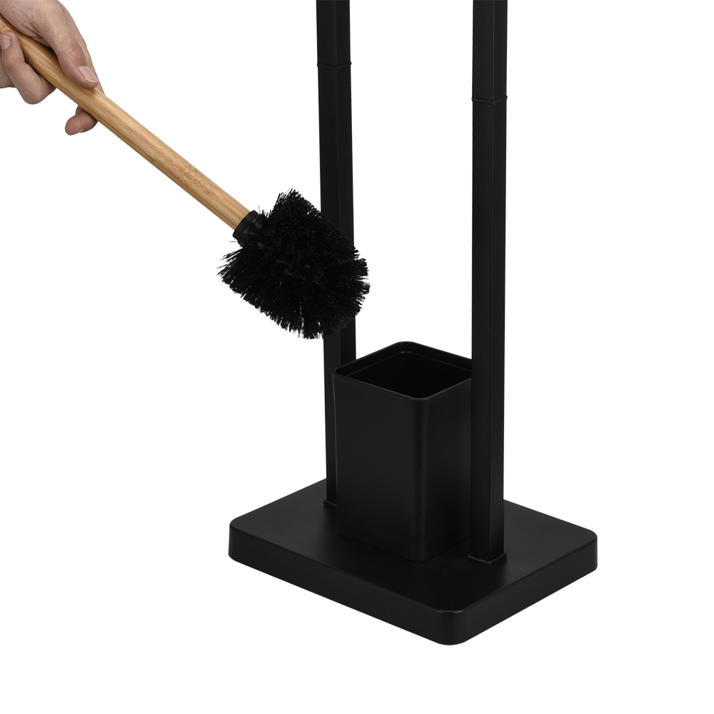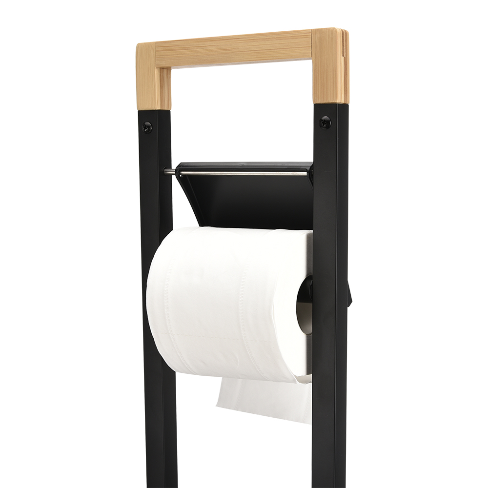 - Our toilet paper holder stand dispenses one roll and holds spare rolls. Of bamboo, eco-friendly material. Super easy to assemble within 3 minutes.