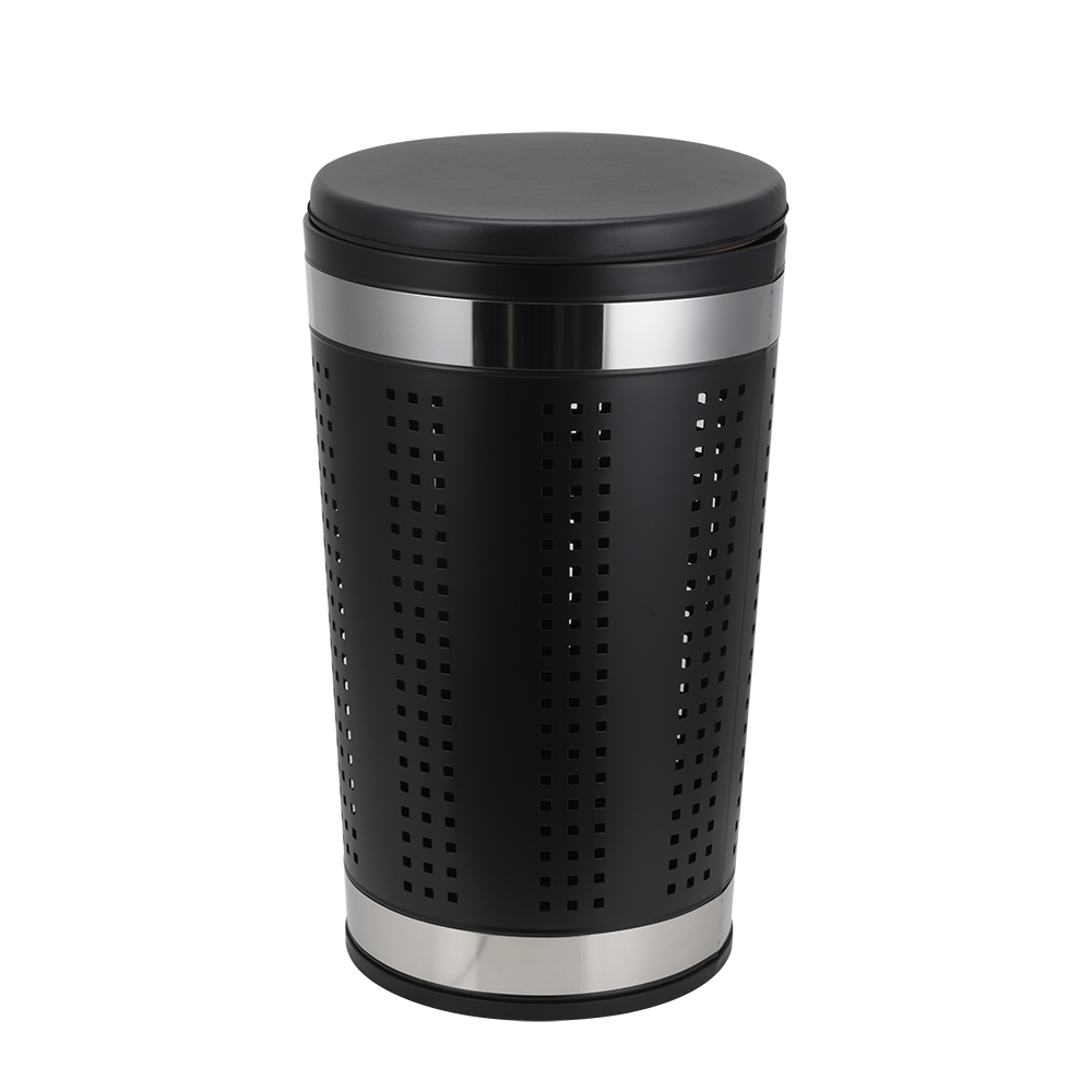 - Round and square luxury leather lid wooden laundry hamper basket bin.