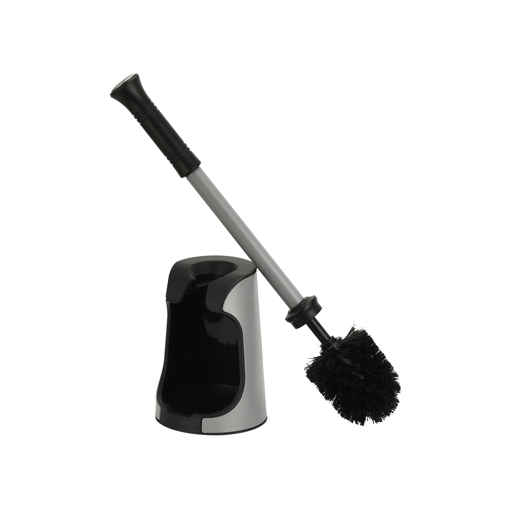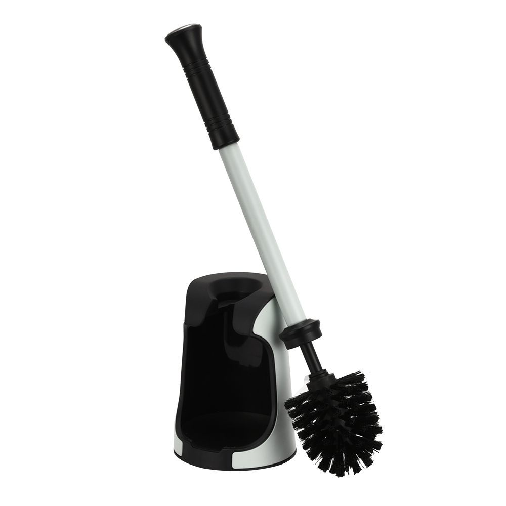 Semi open stainless steel toilet bowl brush and holder black white grey