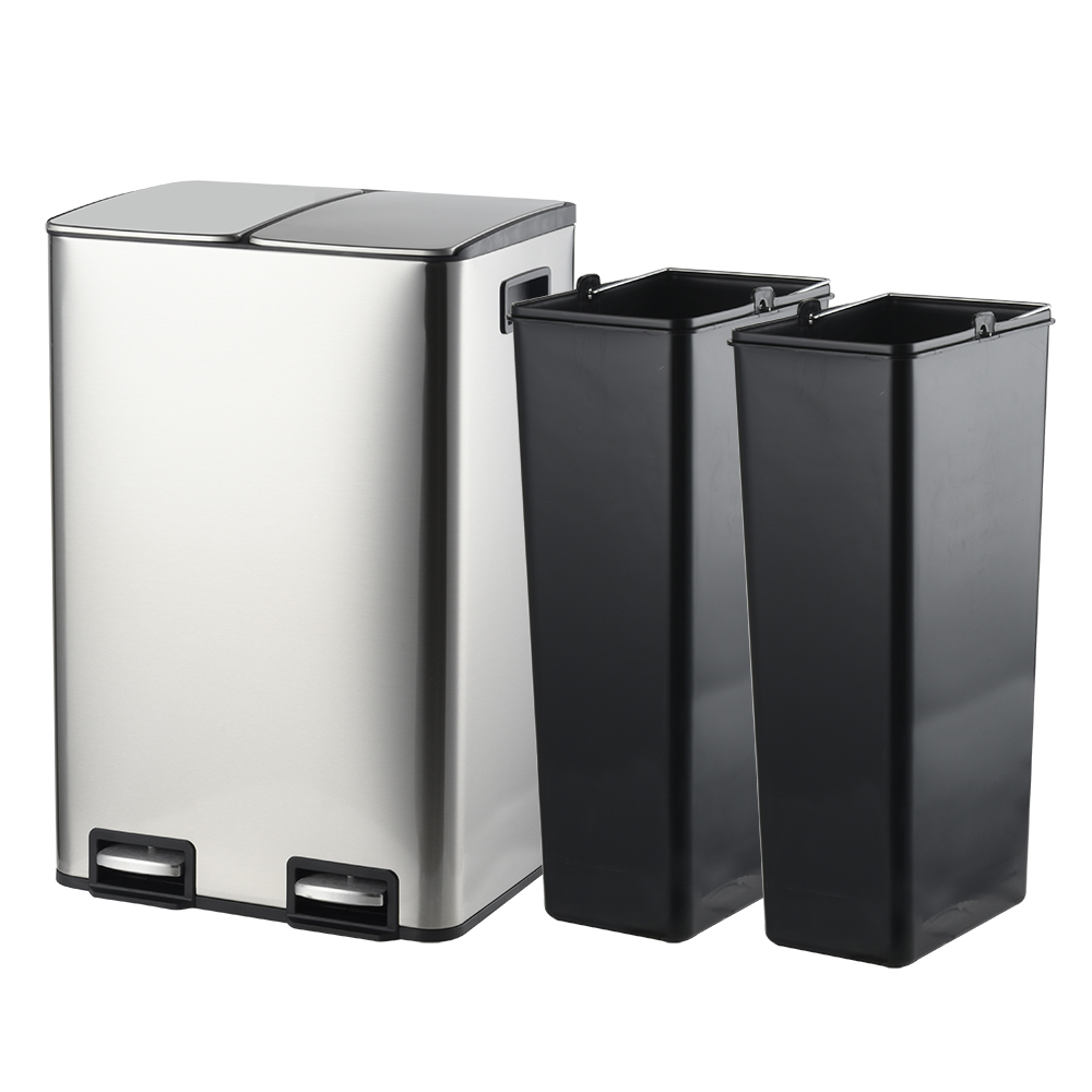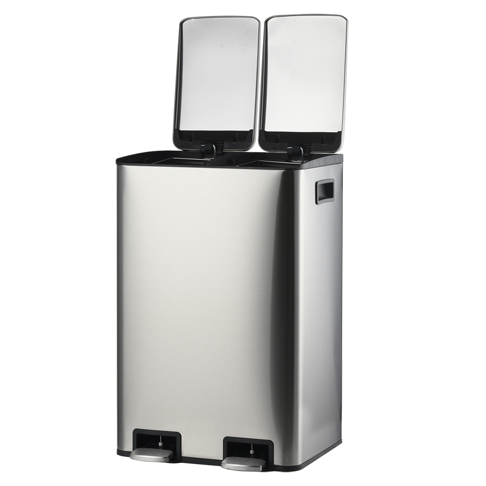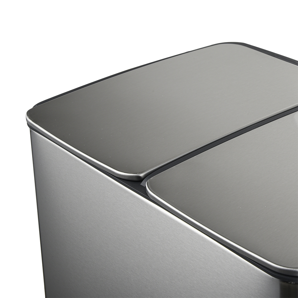 - Our fingerprint proof Soft slow close 2 compartment stainless steel recycle pedal bin is a durable cantilever foot pedal design, hands-free Operation.