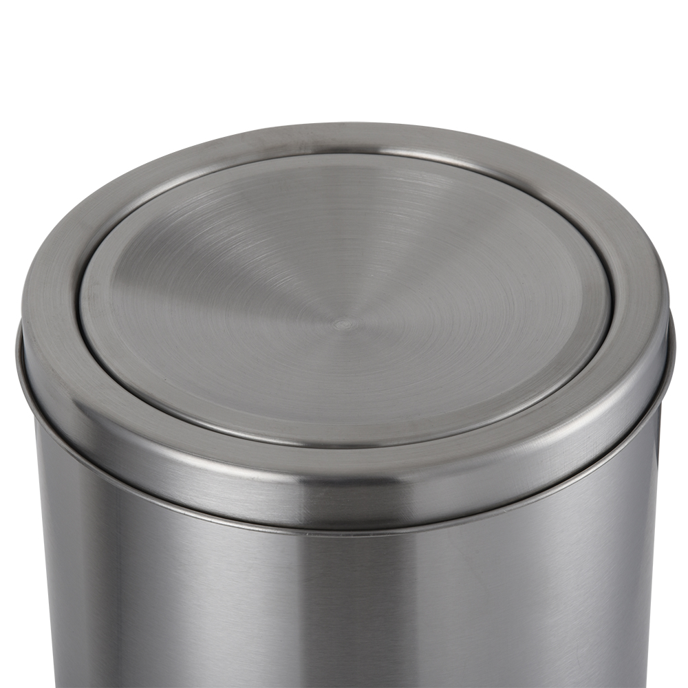 - Stainless steel swing top hotel room trash can waste bin with liner is perfect for public area, such as shopping mall, hotel, library, school and so on.