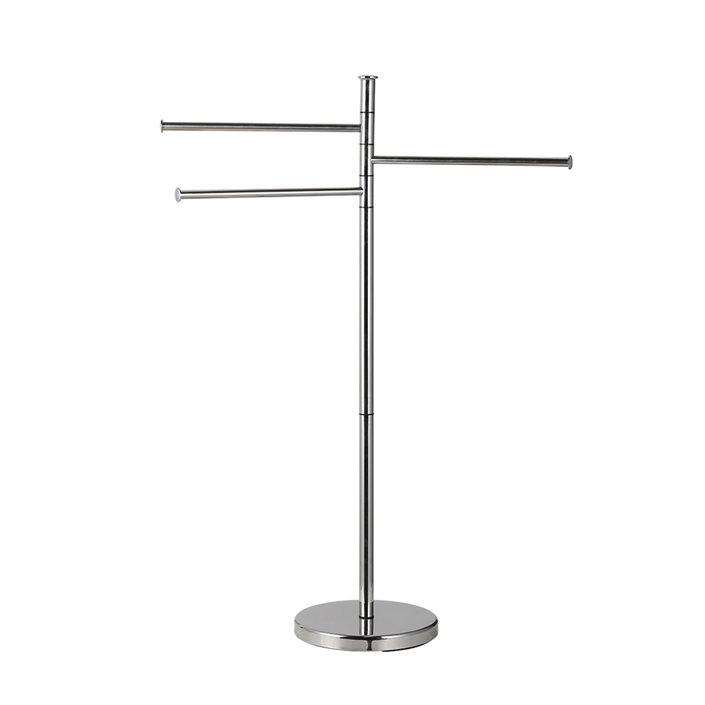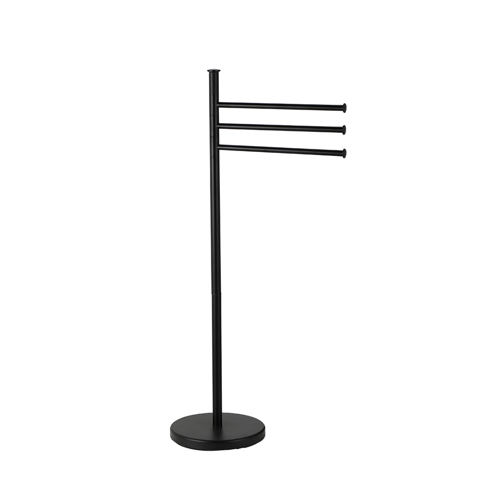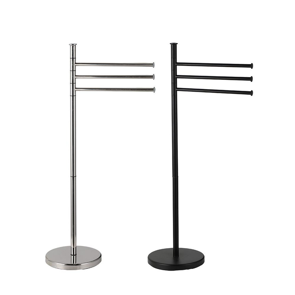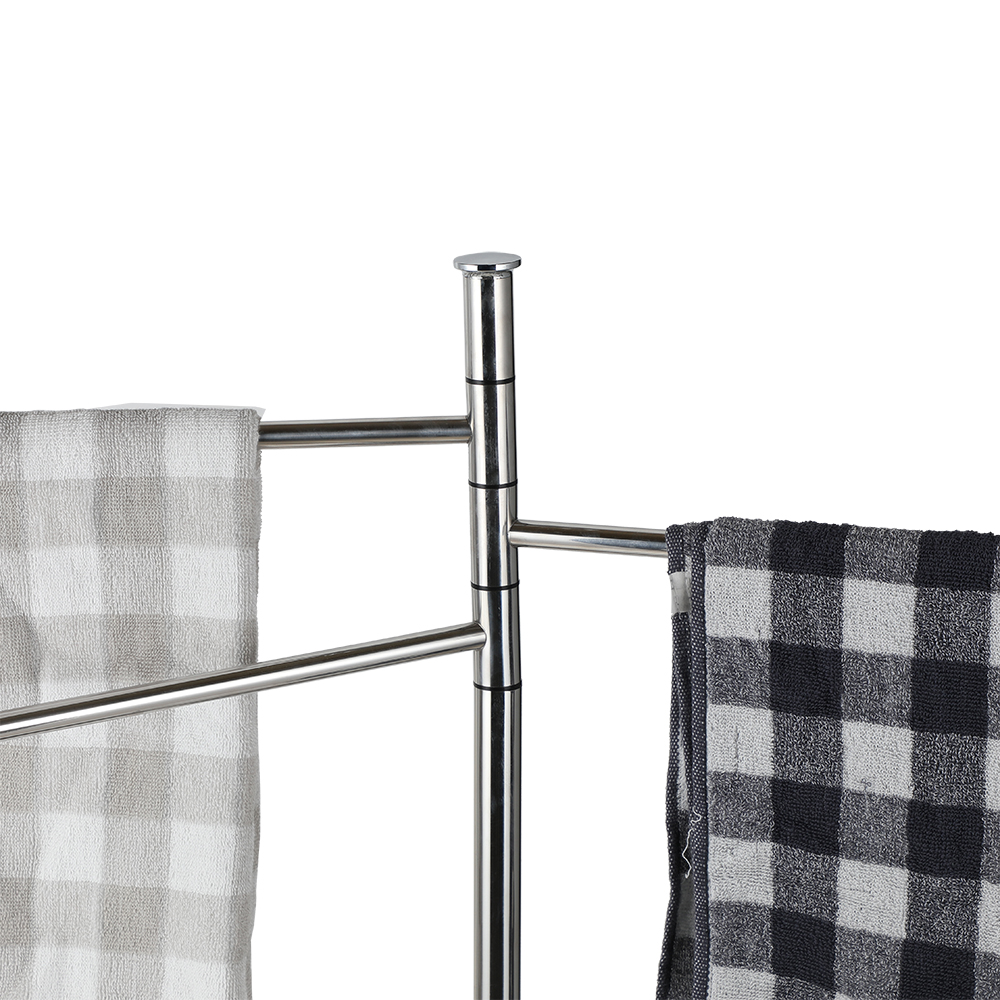 - Stainless steel three 3 bar towel rack stand holder chrome black. It is just the right height for storing fresh, clean towels as your step out of the shower or tub.