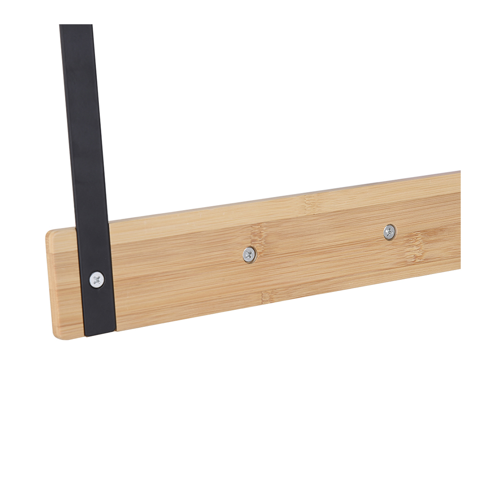 - Steel and natural bamboo over the door mounted towel rack 5 hooks black. It is of bamboo, eco-friendly material.